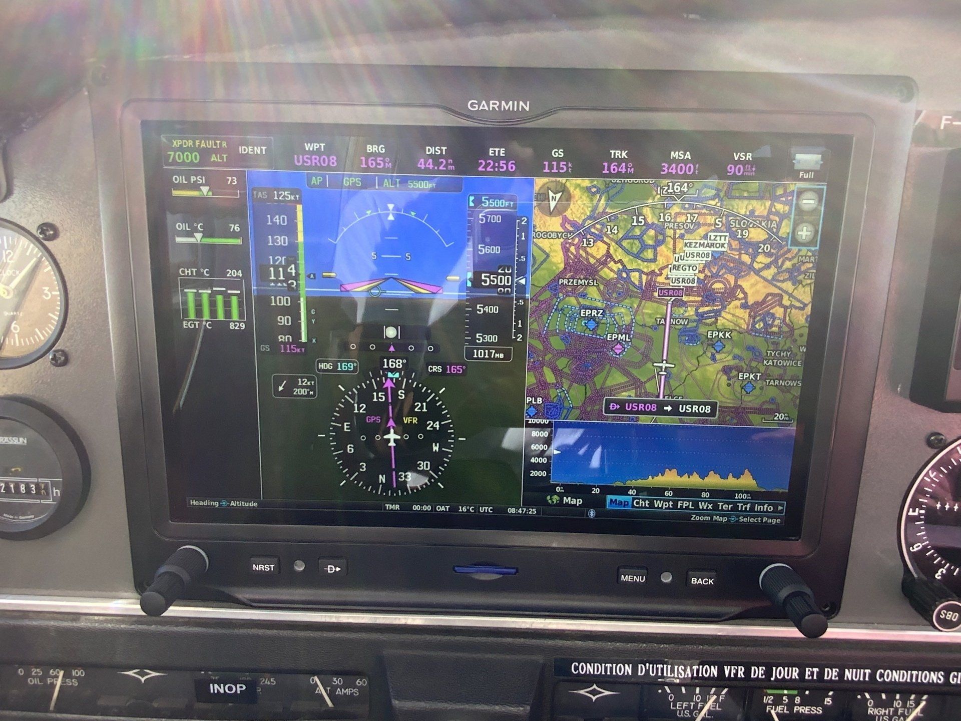 Il à récemment été équipé d'un écran EFIS G3X 10" , un écran G5 , Un ensemble de navigation , GNX375 , et d'un pilote automatique GFC 500.