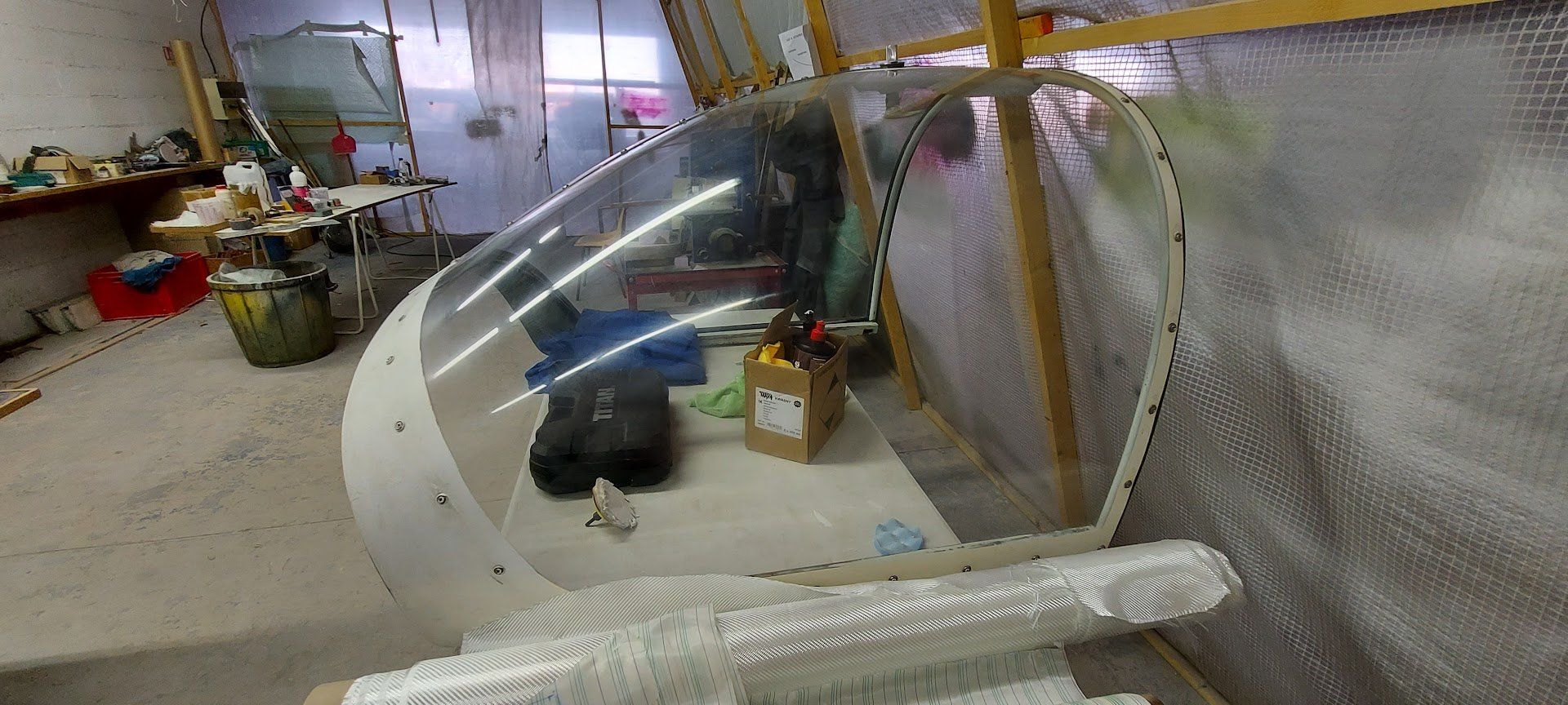 Sur une idée de Philippe PERMINGEAT, une partie du hangar a été spécialement aménagée pour la construction de l'aile de l'Océanair. Plusieurs membres du club ont participé à la confection, charpente, électricité...