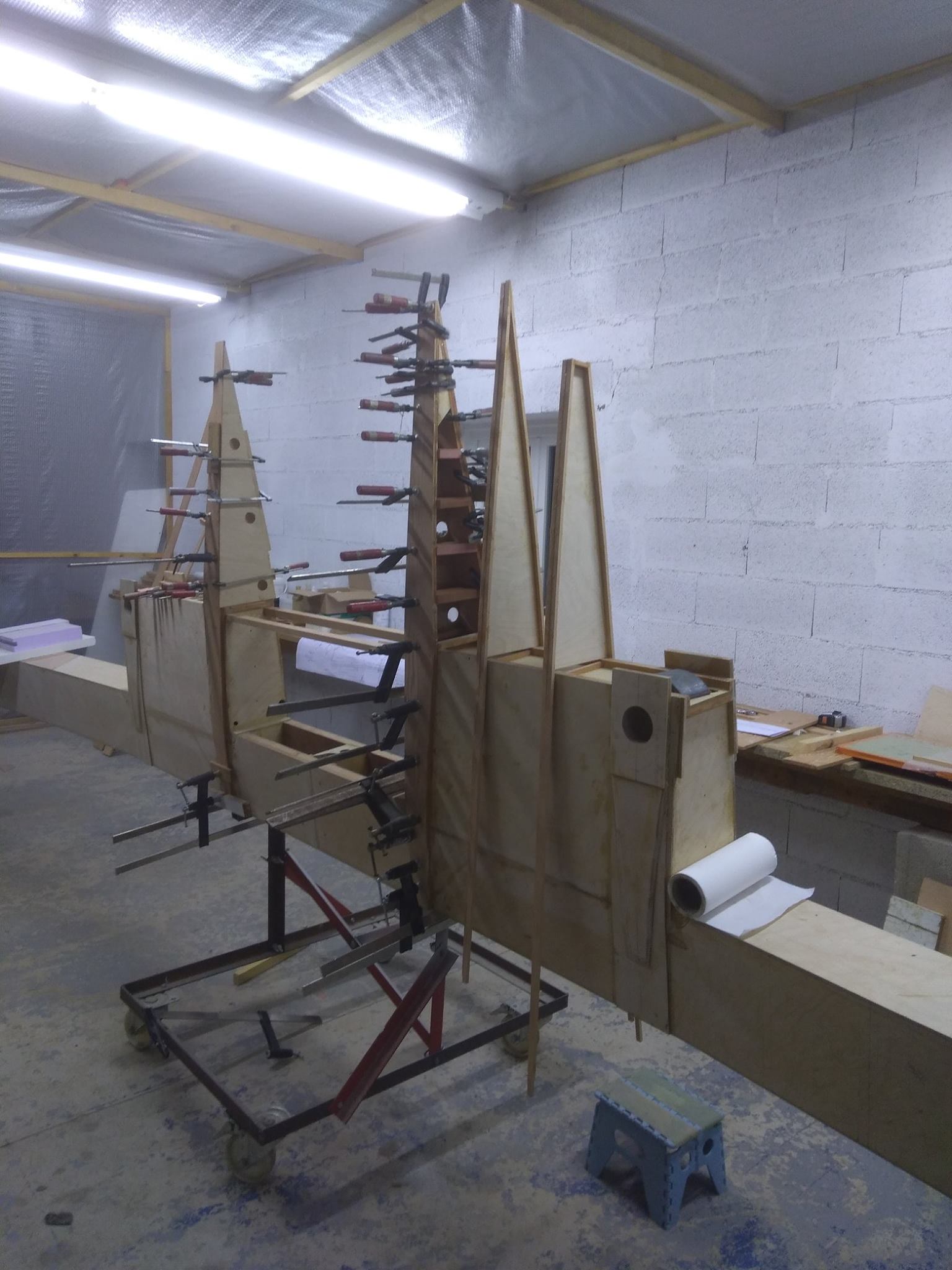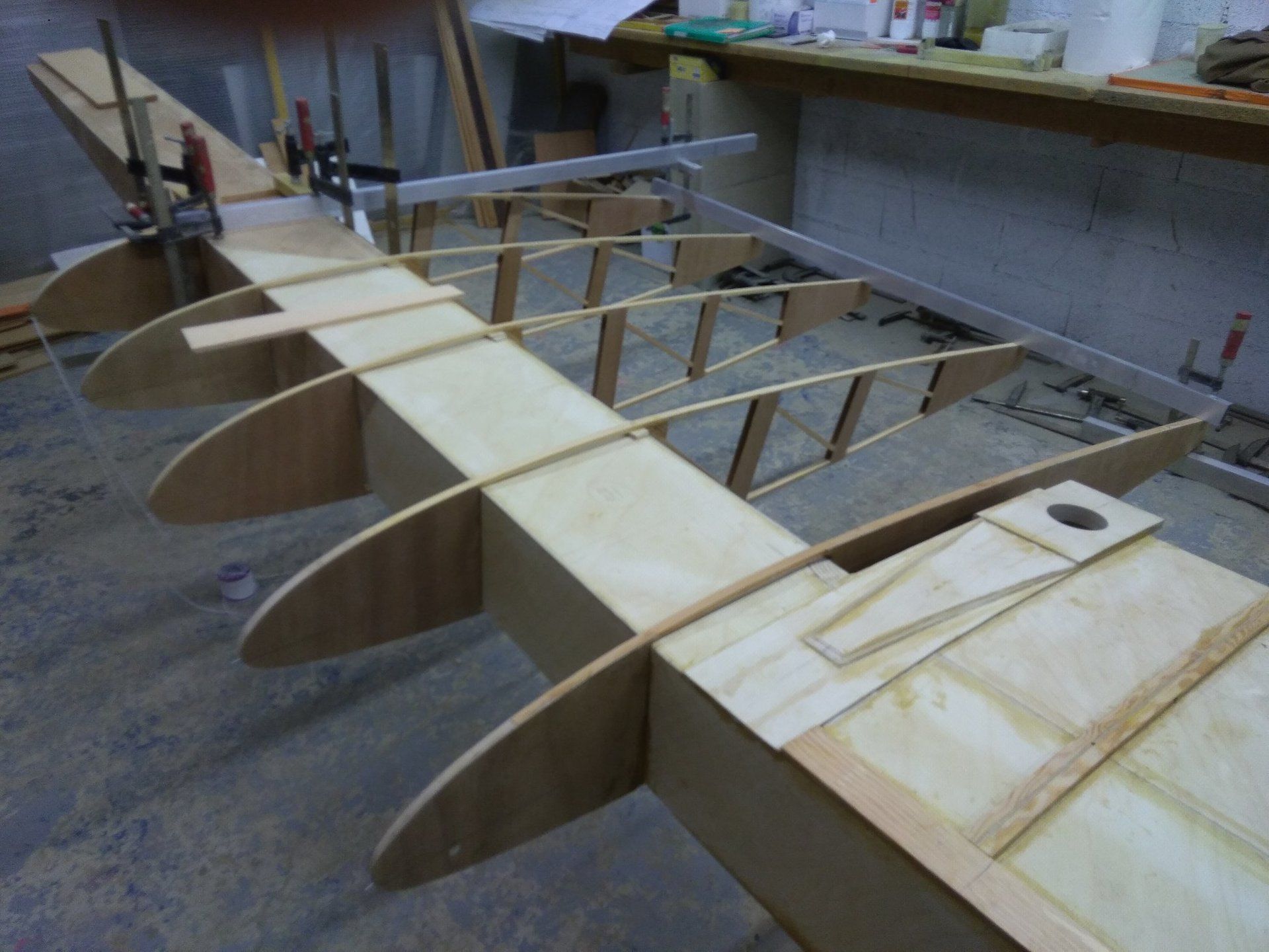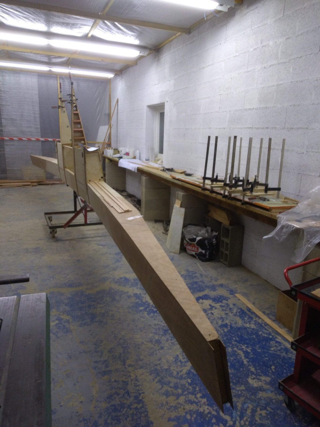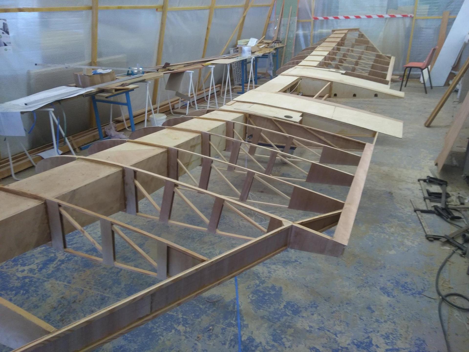 Les nervures sont en cours de réalisation. La construction du longeron va pouvoir débuter.
